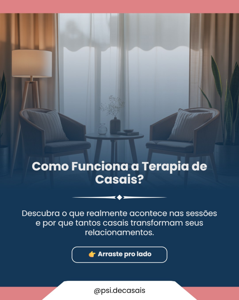 O processo pode incluir sessões individuais e sessões conjuntas, conforme a necessidade do casal, com foco na comunicação, resolução de conflitos, fortalecimento do vínculo e reorganização da relação.